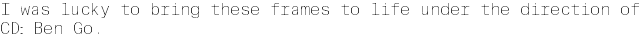 I was lucky to bring these frames to life under the direction of CD: Ben Go. Programs: C4D/Maya Zbrush RedShift Photoshop