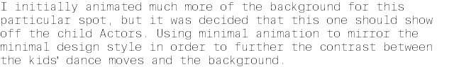 I initially animated much more of the background for this particular spot, but it was decided that this one should show off the child Actors. Using minimal animation to mirror the minimal design style in order to further the contrast between the kids' dance moves and the background. Production Co.: Rabbit Content Editorial: Rock Paper Scissors - David Brodie VFX/Finishing: Framestore Los Angeles Music: Tori Kelly Programs: Photoshop Illustrator After Effects