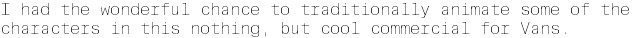 I had the wonderful chance to traditionally animate some of the characters in this nothing, but cool commercial for Vans.